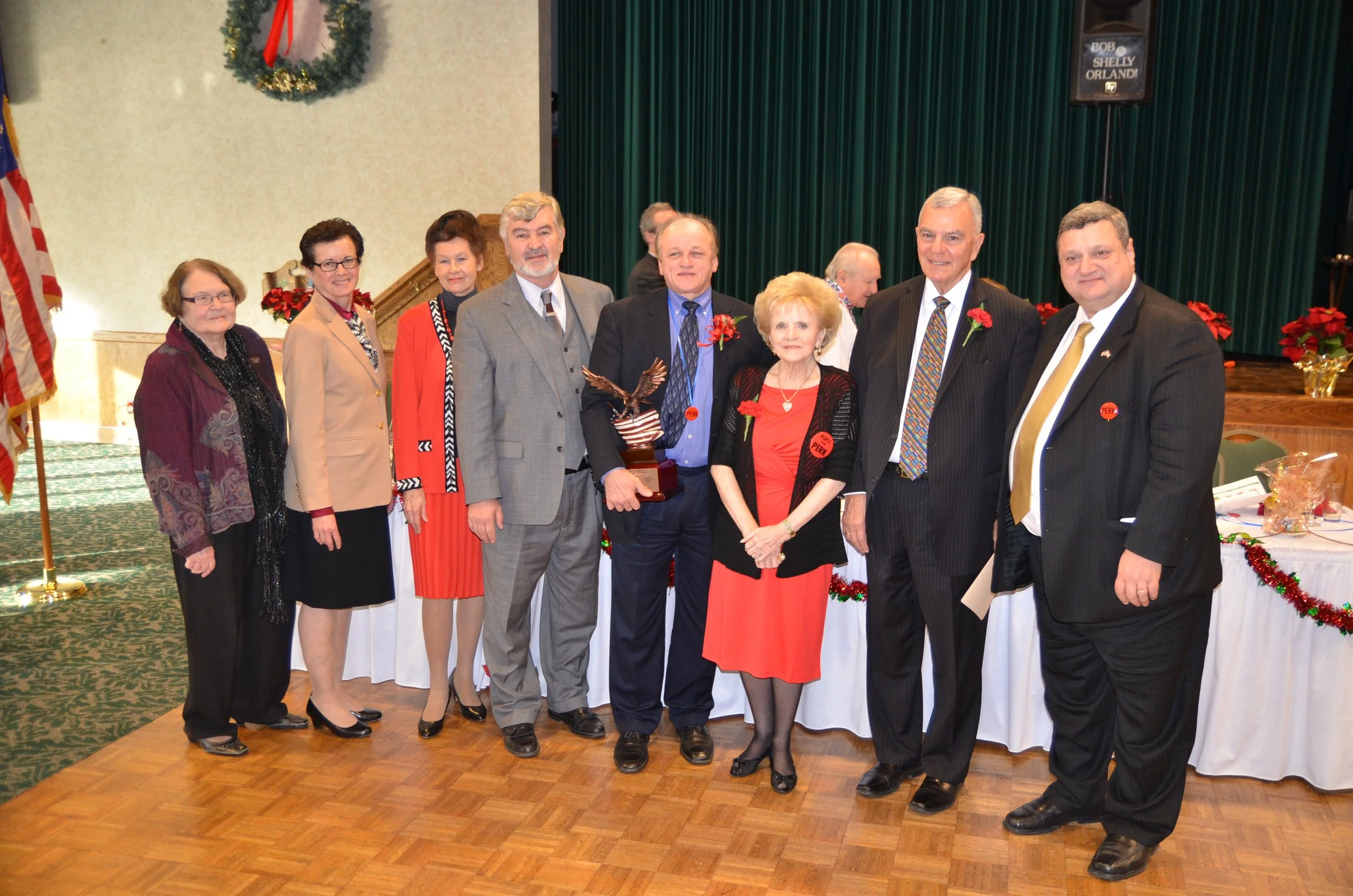 November 2013 - Ralph Perk, Jr., President; Irene Morrow, past president; Judge Ray Pianka (deceased) of the Cleveland Municipal Court; Cleveland Councilman Michael Polensek; Honoree George Terbrack; Dr. Richard Klein, author of “The Perk Legacy” at clevelandmemory.org; former Congresswoman Mary Rose Oakar; Alex Machaskee, former Publisher of the Cleveland Plain Dealer.